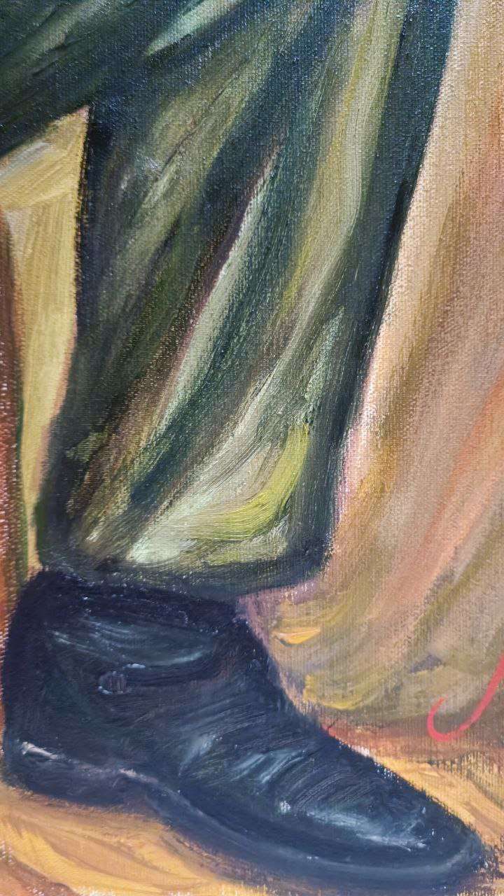 Los tonos amarillos, naranjas y marrones giran como el aire en una bulería. La técnica expresiva y el uso de colores cálidos crean una atmósfera envolvente que transmite el calor del sur, la intensidad del momento y la conexión espiritual entre el artista y su instrumento.